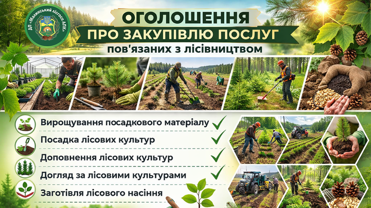 1. Замовник послуг повязаних з лісівництвом: 1.1. Найменування: Дочірнє підприємство «Малинський лісгосп АПК» Житомирського обласного комунального агролісогосподарського підприємства...[детальніше...]